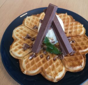 Gratis inngang. Åpen kafé med vafler og kake.